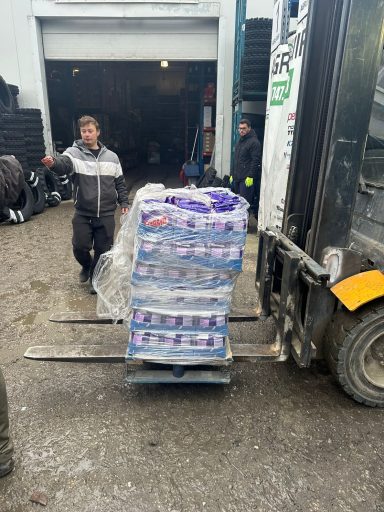 Angekommener Transport von September 2022 wird in Rumänien entpackt.